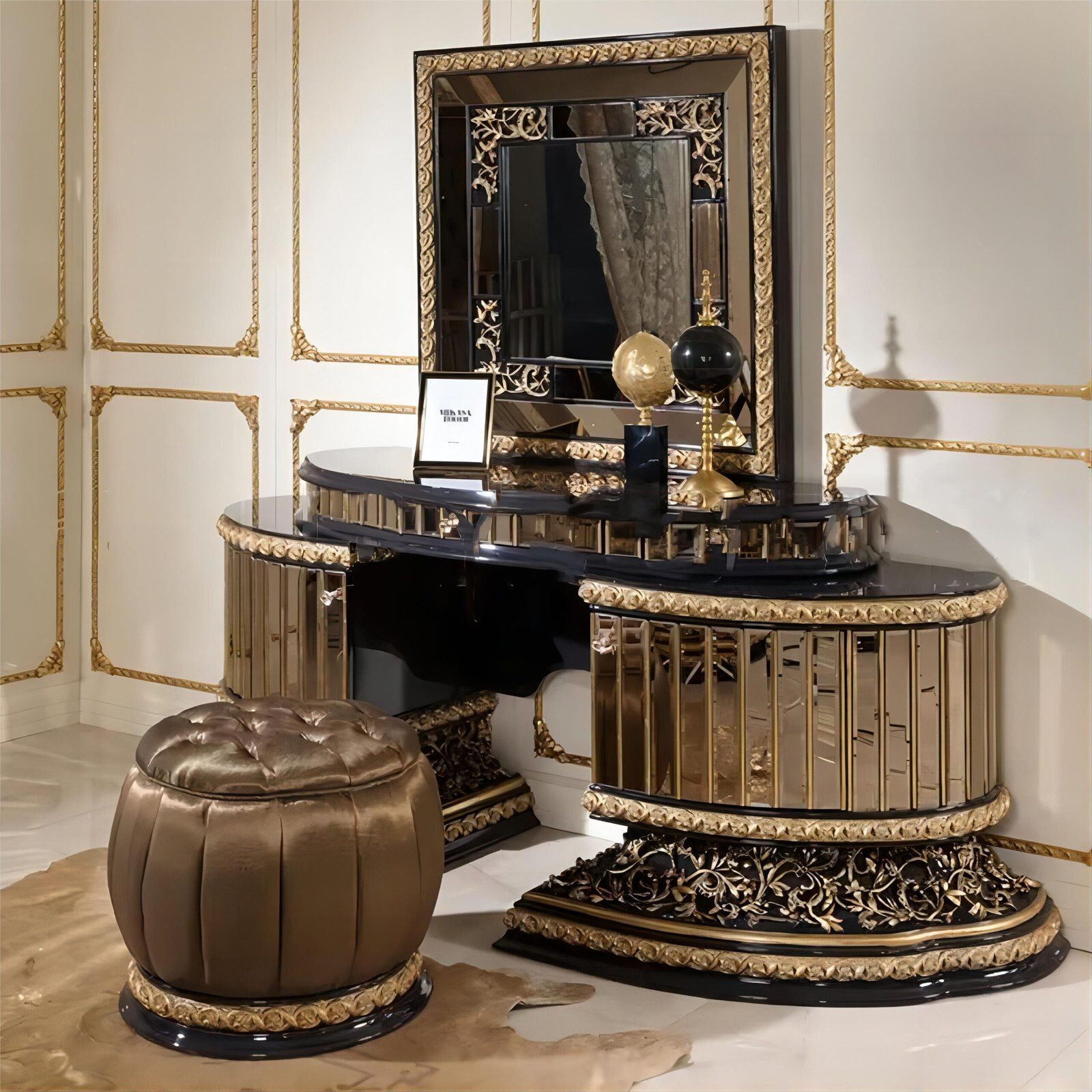 | Size | dressing stool: 564*564*460mm, dressing table: 2425*622*835mm, mirror: 950*80*1030mm |